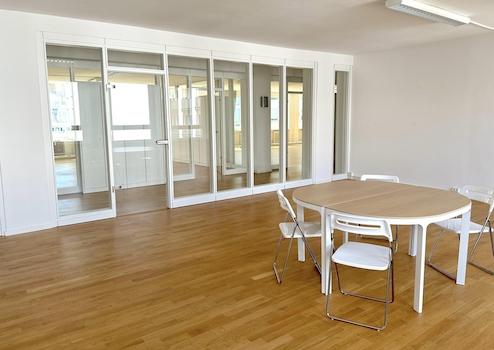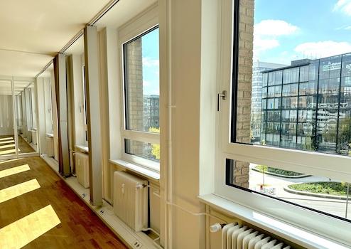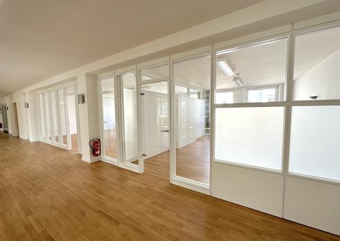 Freundliche, sehr helle und vielseitige Räume in Hamburgs Mitte. Beidseitige Belichtung und Glaswände schaffen transparente Räume im gesamten Objekt. Naturholzboden und Offenheit fördern Raumerlebnis und Wohlbefinden.