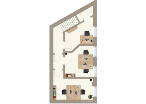 Hier befinden sich 8 Büro- bzw. Mehrzweckräume in einer ruhigen, charmanten Innenhoflage, die wahlweise intern über die Fronthauseinheit oder über den Torweg erreichbar sind. Großzügige Fensterflächen sorgen für viel Tageslicht und schaffen eine ideale Basis für eine produktive Bürogemeinschaft. Die Hinterhauseinheit wird durch 3 weitere Büros im OG des Hinterhauses ergänzt.