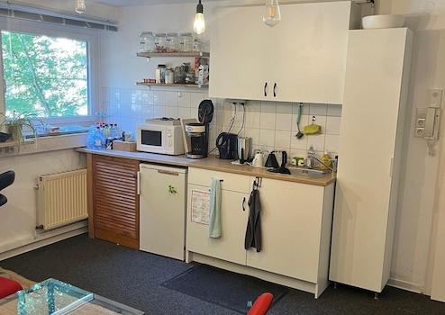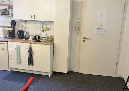 Im vorderen Büro/Eingangsbereich kann eine Büroküche installiert werden.