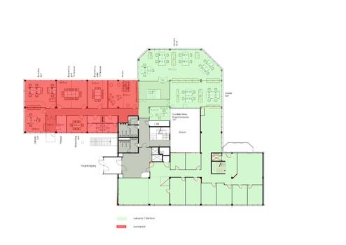 - Die Büroflächen verfügen über ein kompaktes jedoch flexibles Flächenlayout für Großraum- und Gemeinschaftsbüros mit einer hohen Flächeneffizienz