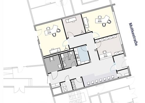 An der Moltkestraße 23 entsteht ein hochwertiger Neubau mit flexibel gestaltbaren Büro- und Praxisflächen. Die Flächen befinden sich im Erstbezug und bieten moderne Architektur, helle Raumstrukturen sowie ein repräsentatives Erscheinungsbild im beliebten Stadtteil Pempelfort.
