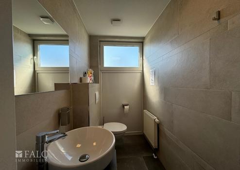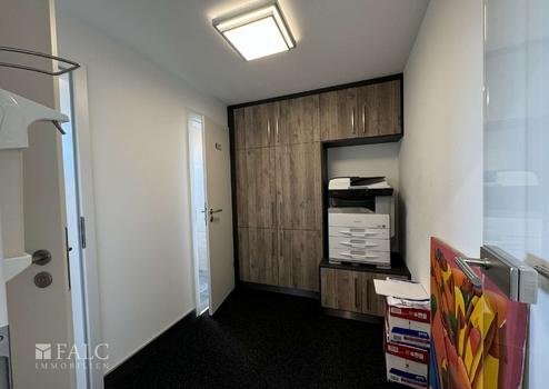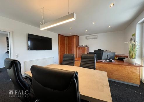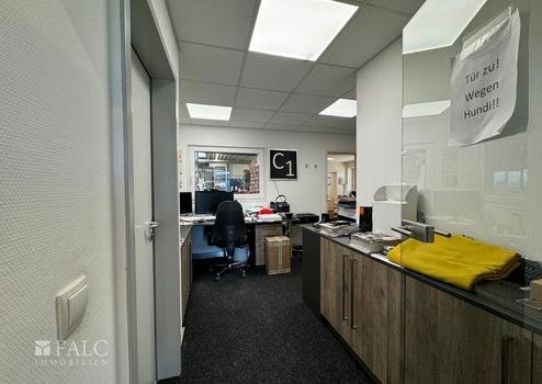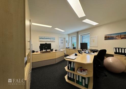 Beim Betreten des Gebäudes fällt sofort die großzügige und helle Gestaltung der Räume auf. Die Büros mit zur Zeit 4 Arbeitsplätzen sind mit großen Fenstern ausgestattet, die viel Tageslicht hereinlassen und eine angenehme Arbeitsatmosphäre schaffen. Die Beleuchtung wird durch moderne Einbauleuchten ergänzt, die eine gleichmäßige Ausleuchtung gewährleisten.