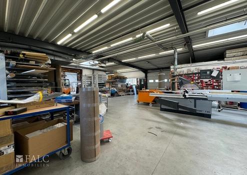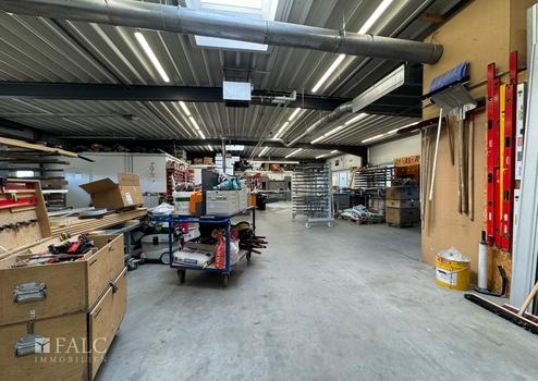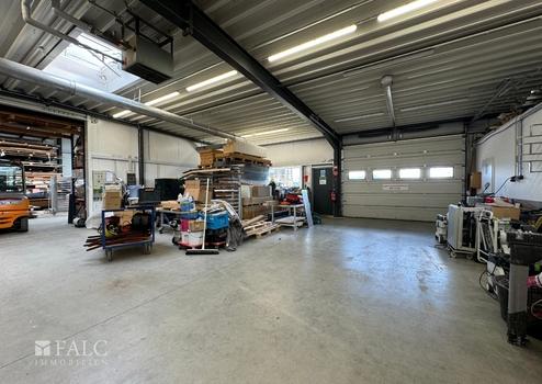 Die immobilie hat eine Fläche von insgesamt ca. 650 Quadratmeter . Die ein-geschossigen, 2001 errichteten Baulichkeiten bestehen aus zwei Hallen mit Bürotrakt mit Büro-, Werkstatt- und Lagerräumen (ca. 650 Quadratmeter ). Die Lagerhalle hat eine Höhe von ca. 4 Metern. Die zweite Halle wurde im jahr 2011 angebaut. Die Büroräume sind mit Klimageräten ausgestattet.