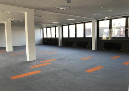 Die angebotene Fläche befindet sich im 3. OG und ist aufgeteilt in ein Großraumbüro sowie mehrere z.T. mit Glastrennwänden abgetrennte Büroräume in unterschiedlichen Größen, Besprechungsräume, Wartebereich, Teeküche, Abstellraum.