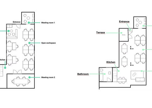 Das Büro ist ausgestattet mit 24 Arbeitsplätzen und 3 Meeting Räumen. Die Fläche ist komplett möbliert, sodass man sofort einziehen und arbeiten kann. Das Büro erstreckt sich über 2 Etagen.