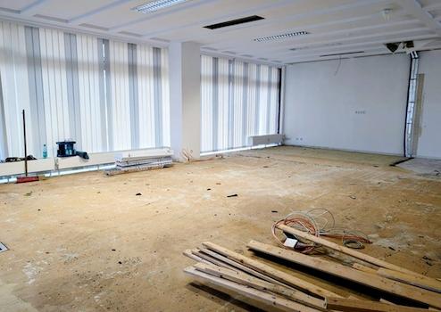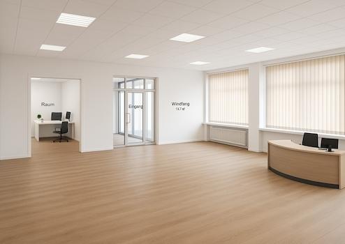 Alle Wände erhalten einen frischen weißen Anstrich, die Bodenflächen sowohl im Erdgeschoss wie auch im Keller werden mit modernem Vinylbelag neu ausgestattet. Im Gewerbebereich des Erdgeschosses sorgt eine zeitgemäße LED-Beleuchtung unter hochwertigen Spanndecken für ein ansprechendes, modernes und effizientes Lichtkonzept.