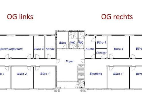 -Optional: Die Büroeinheit OG links: ca. 190 m² kann hinzugemietet werden, dann beträgt die Gesamtfläche 390 m²