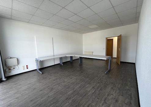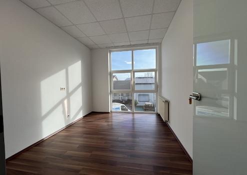 In moderner Massivbauweise errichtetes Gewerbeobjekt mit Büro- und Lagerflächen im Erdgeschoss sowie der zur Vermietung stehenden Büroeinheit im 1. Obergeschoss mit eigenem, separatem Eingang an der linken Gebäudeseite. Die Einheit umfasst 165 m² Nutzfläche mit 5 Büroräumen zwischen 11 m² und max. 57 m² (der größte Raum ist aktuell mittig mit einer Leichtbauwand geteilt), einer Teeküche (14,45 m²), Diele, Flur, 2 Toiletten sowie einem Lager- und Heizungsraum.