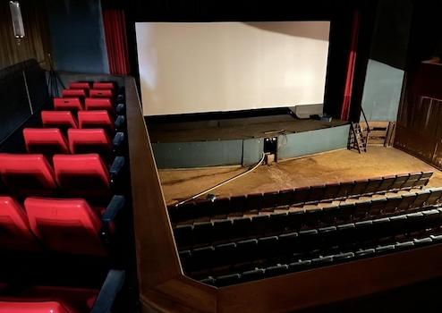 Der Kinosaal mit ca. 150 Sitzplätzen finden sich im Untergeschoss.