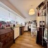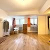Geradeaus gelangen Sie in den größten der drei Räume, ausgestattet mit einer modernen Einbauküche und hochwertigem Eichenboden. Eine breite Fensterfront sorgt für viel Tageslicht und schafft eine helle, freundliche Atmosphäre. Von hier aus öffnen sich zwei weitere, ebenfalls mit Eichenboden versehene Räume, die vielfältige Nutzungsmöglichkeiten bieten.