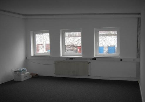 Drei Büros sowie Toilettenräume sind vorhanden. Der Betonboden ist staplerfähig und auch für schwere Maschinen geeignet.