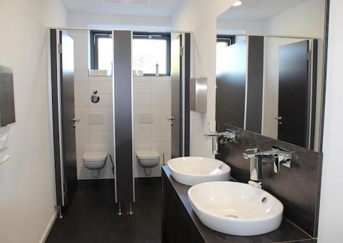 Neuwertige WC Anlage sowie separate WC Damen und Herren über die Halle begehbar.