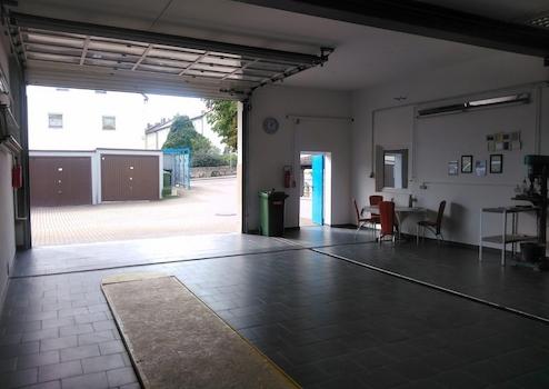Die Werkstatt ist ausgestattet mit Hebebühne und Montaggrube (mit Abdeckung) und Rolltor