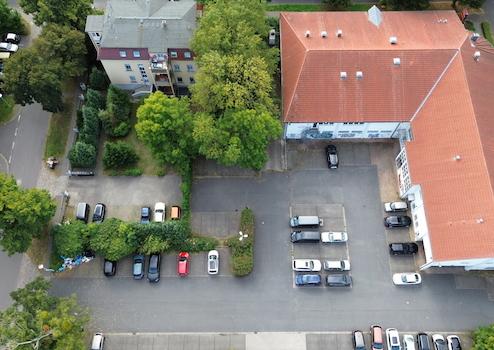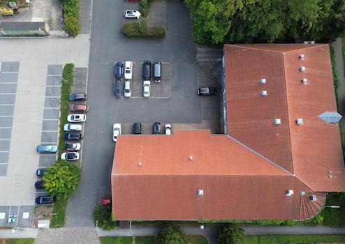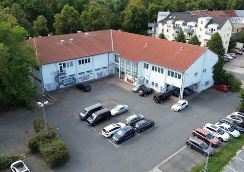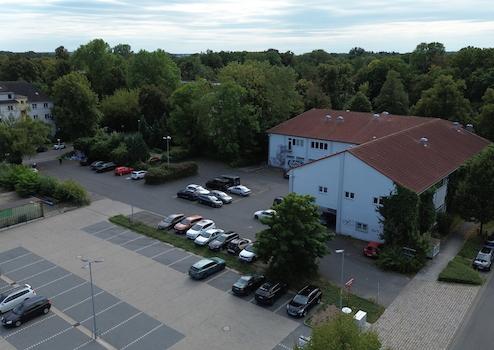 Das weitläufige Grundstück von ca. 4.350 m² bietet erhebliche Entwicklungsmöglichkeiten und mit seinen 75 Stellplätzen ausreichend viele Kundenparkplätze.
