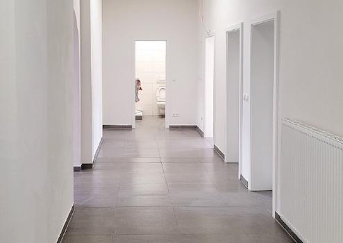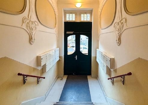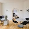 Hinter der Eingangstür öffnet sich ein Ensemble aus sechs hellen Räumen, die dank großer Fenster und großzügiger Glastüren von viel Tageslicht durchflutet werden. Die hohen Decken schaffen ein angenehmes Raumklima und unterstreichen den repräsentativen Charakter der Fläche.