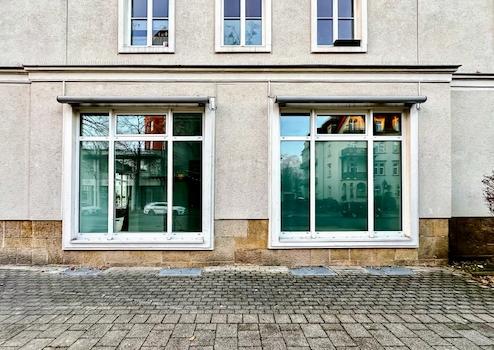 Die großen Schaufensterfronten bieten hervorragende Sichtbarkeit und eignen sich perfekt für Warenpräsentationen oder eine einladende Außendarstellung.