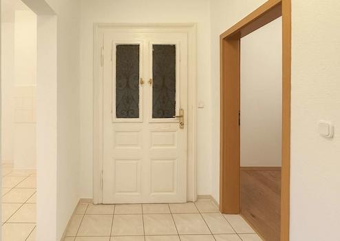 Durch die Lage im Hochparterre ist die Wohnung bequem erreichbar und bietet dennoch eine angenehme Distanz zur Straße. Der Hauseingang erfolgt über einen gesicherten Durchgang, der Privatsphäre und einen kontrollierten Zugang gewährleistet.