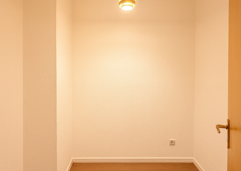 Beim Betreten gelangt man zunächst in den geräumigen Flur, von dem aus alle weiteren Räume erreichbar sind. Die Teeküche verfügt über genügend Platz für eine kompakte Arbeitszeile und ein praktischer Abstellraum ergänzt den funktionalen Grundriss und bietet zusätzlichen Stauraum. Das Bad ist mit einer Dusche, einem WC und einem Waschbecken ausgestattet.