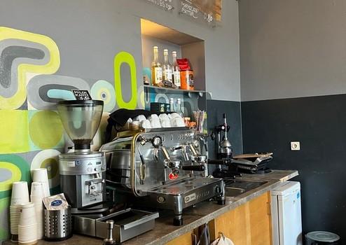 Das Café ist voll ausgestattet, inklusive Kaffeemaschine, Vitrine und Ofen, sodass keinerlei Investitionen erforderlich sind. Der Stil ist eine gelungene Mischung aus Vintage und urban, die eine gemütliche Atmosphäre schafft und sofort zum Wohlfühlen einlädt.