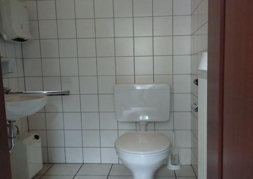 - Bürotrakt ist weiß gefliest