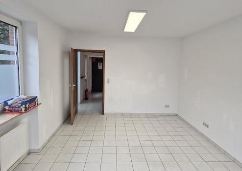 - Erdgeschoss: Gäste-WC, 1 großer Büroraum, alles weiß gefliest