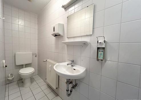 Ein gut geschnittener Flur verbindet die einzelnen Bereiche miteinander und führt zu den funktionalen Nebenräumen. Dazu zählen ein Bad mit Dusche, sowie eine praktische Teeküche, die den Büroalltag komfortabel unterstützen. Ergänzend steht ein separater Pausenraum zur Verfügung, der den Mitarbeitenden einen angenehmen Rückzugsort bietet.