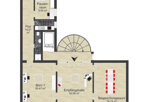 Die Gewerbeeinheit im 6.Obergeschoss ist wie folgt aufgeteilt: