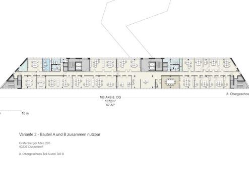 Der repräsentative 10-geschossige Bürokomplex mit einer Mietfläche von über 33.000 m² setzt am Standort Düsseldorf-Grafenberg architektonische Akzente aus Glas, Stahl und Beton. Die hochmoderne Gesamtanlage besteht aus drei solitären Gebäudekomplexen mit einer zentralen Eingangssituation.
