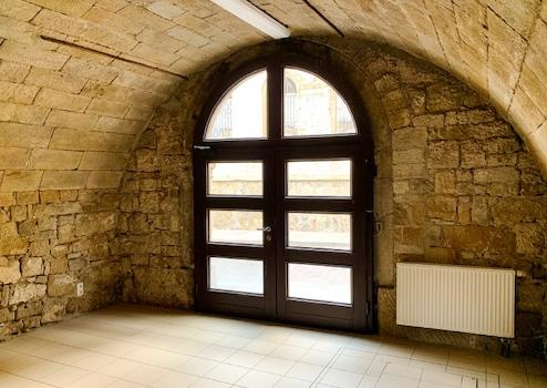 Das historische Sandsteingewölbe mit seinen beeindruckend hohen Decken verleiht den Räumen eine einzigartige Atmosphäre. Stilvolle Türen und große Fenster sorgen für eine helle, einladende Einheit mit besonderem Charme.