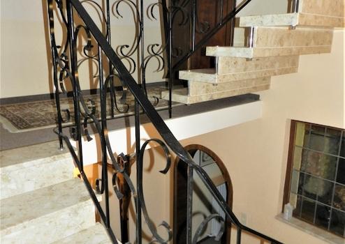 - 3 Treppenhäuser, kein Aufzug (auch baulich schwer zu integrieren, und wenn doch, dann nur für einen Teil der Zimmer ohne Stufen erreichbar), Treppenlifter zum 1. OG von der Ebene der Rezeption aus vorhanden