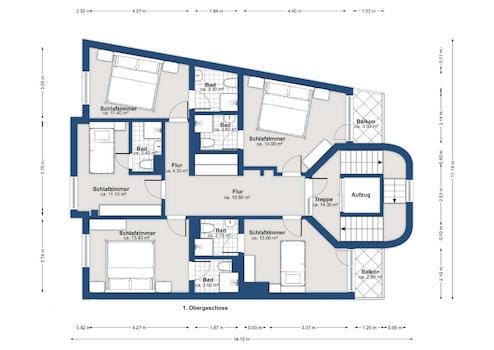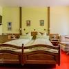 Im 1. + 2. Obergeschoss befinden sich die insgesamt 10 Hotelzimmer, davon 6 Zweibett- und 4 Einbettzimmer, die bequem über einen Fahrstuhl oder das Treppenhaus zu erreichen sind. Die Zimmer sind in einem soliden Standard eingerichtet und verfügen jeweils über ein schönes Bad, zwei davon sogar mit Badewanne. Die Zimmer zur Hofseite verfügen über einen Balkon und das Frühstücksrestaurant im EG über einen kleinen Innenhof mit einer Terrasse.