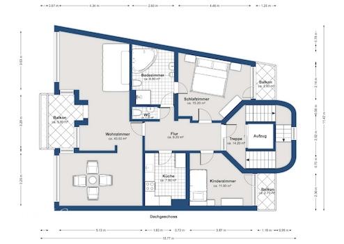 - 1 ca. 90 m² Wohnung im DG + ausgebauter Spitzboden