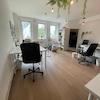 Das Büro besteht aus einem großen Hauptraum mit Zugang zur wunderschönen, privaten Sonnenterrasse, eine kleine Oase mitten in der City. Der separate Konferenzraum lädt dazu ein Kunden repräsentativ zu Empfangen, Workshops zu geben oder Klienten zu behandeln. Ein gemütlicher Aufenthalts- / Empfangsraum mit Küchenzeile und Kühlschrank rundet das Office ab.