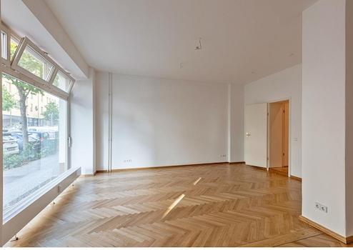 Der Gewerberaum selbst überzeugt durch große Schaufenster, hochwertiges Fischgrätparkett und klassische Altbau-Atmosphäre: hell, offen, einladend – dein nächstes Kapitel beginnt hier.