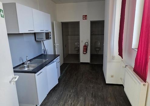 Herrentoilette, Damentoilette, Aufenthaltsraum mit Küche und Lager.