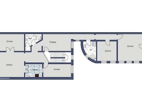 Das Büro/ die Praxis hat 6 Zimmer, Küche, WC, Bad und Flur sowie einen Abstellraum im Keller.