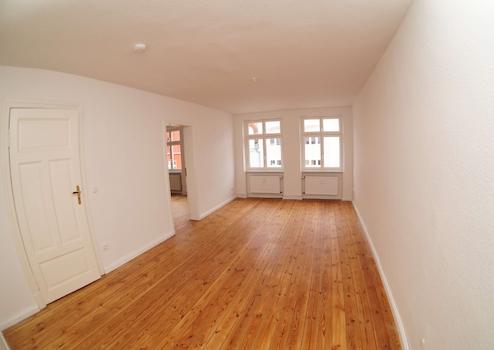 Die Räume haben einen historischen aufgearbeiteten Dielenboden, Wände und Decken sind weiß tapeziert.