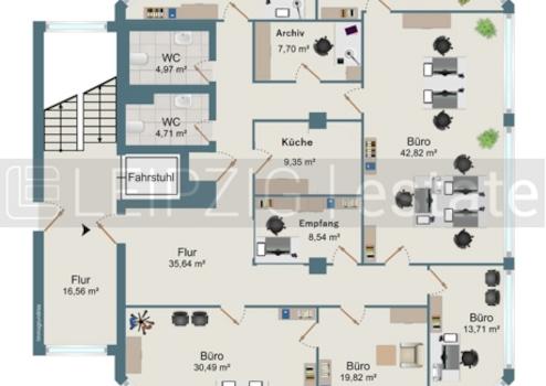 zentrumsnahe Büroetage, 225,55qm, Empfang + 5 Büros + 42qm Besprechungsraum, Fahrstuhl