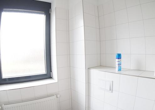 Das WC hat einen Vorraum mit Waschtisch.