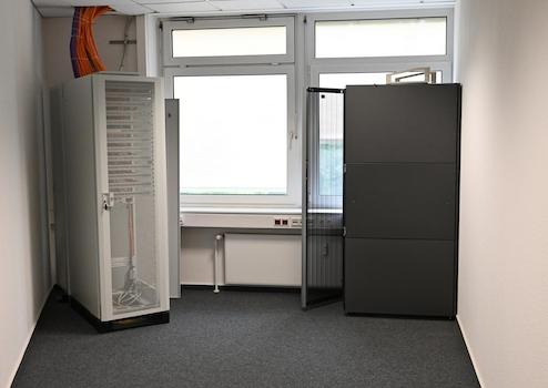 EDV-Verkabelung, Kabelkanäle Laminat, antistatischer Teppichboden, Deckenbeleuchtung,
