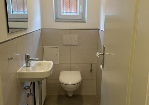 Ein WC sowie ein Kellerraum mit ca. 20 m² sind dabei.