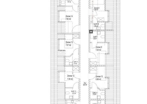 Im Obergeschoss und Dachgeschoss sind 14 Hotelzimmer mit WC und Dusche momentan im Rohbauzustand. Ein Büro im Erdgeschoss ist als Rezeption geplant. Eine andere Verwendung, z. B. als Reisebüro, ist denkbar.
