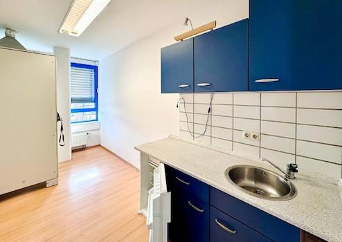 Vor der Halle befindet sich ein heller Bürobereich, der sowohl als Verwaltungs-, Sozial- oder Besprechungstrakt genutzt werden kann.