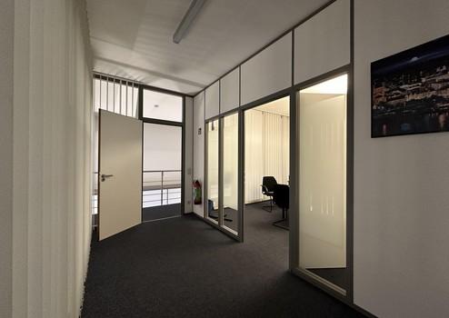 Es handelt sich um ein Bürogebäude mit flexibler Aufteilungsgestaltung durch Leichtbauwände. Aktuell gibt es 7 Büroräume und ein Großraumbüro, 2 Besprechungsräume, eine Küche, 2 seperate WC Bereiche sowie den Empfangsbereich.