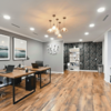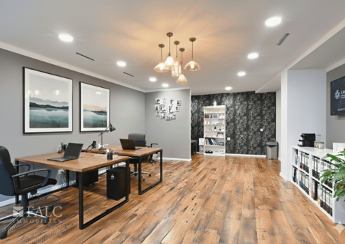 Durch den offenen Grundriss ist die Einheit vielseitig nutzbar und lässt sich — wie im digital erstellten Beispielbild gezeigt — auch problemlos als Büro- oder Dienstleistungsfläche einsetzen.