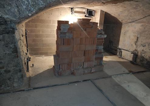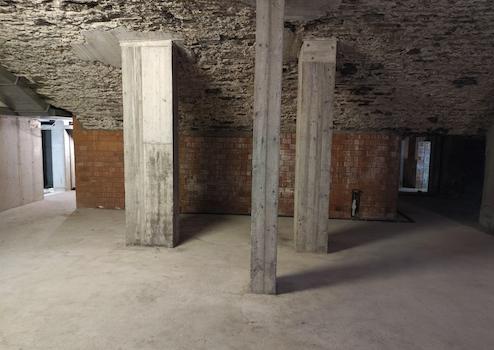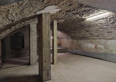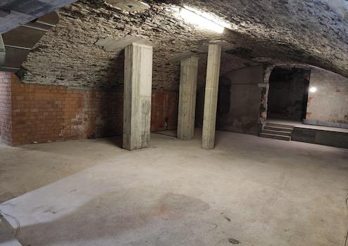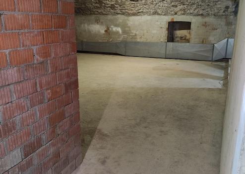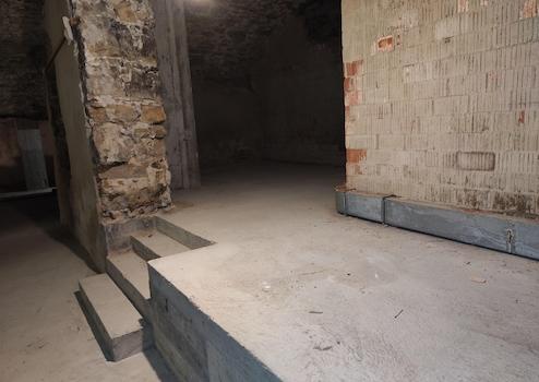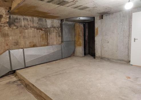 Ein kleiner Makel besteht im hinteren Bereich: Dort weist eine Wand leichte Feuchtigkeit auf, ähnlich einem normalen, unbehandelten Gewölbekeller. Die Haupträume sind hiervon nicht betroffen. Für viele Nutzungen stellt dies kein Problem dar, alternativ kann der betroffene Bereich abgetrennt oder separat behandelt werden.