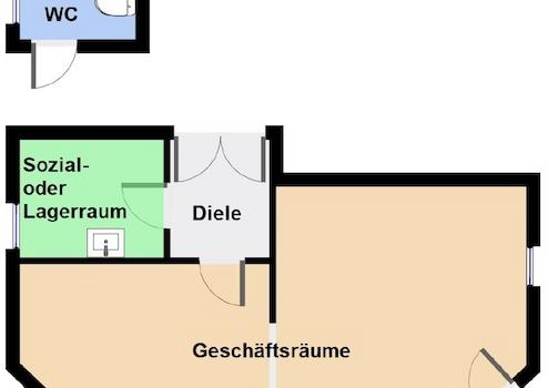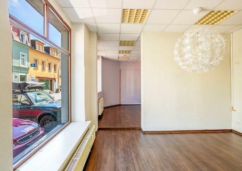 Die Gewerbe-, Laden- oder Büroeinheit befindet sich im Erdgeschoss eines gepflegten Wohn- und Geschäftshauses. Sie besteht aus zwei Geschäftsräumen, einem Sozial- oder Lagerraum, der Diele und einer separaten Toilette auf halber Treppe. Einer der Geschäftsräume besitzt ein großes Schaufenster, welches sich für die Präsentation Ihrer Waren oder Dienstleistungen eignet. Neben dem Straßenzugang sind die Gewerberäume auch über das Treppenhaus erreichbar. Der Gewerbe-, Laden- oder Büroeinheit ist ein Keller zugeordnet.