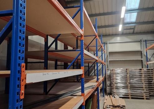Das Lager ist mit Hochregalen ausgestattet, diese können entfernt werden oder Ihren Anforderungen entsprechend angepasst werden.