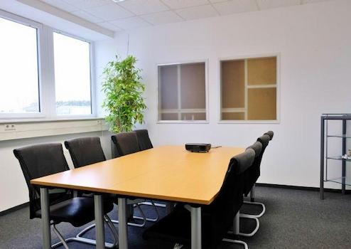 Ausstattung. Büro mit Einbauküche. LAN-Steckdosen. Kleiner Serverschrank.