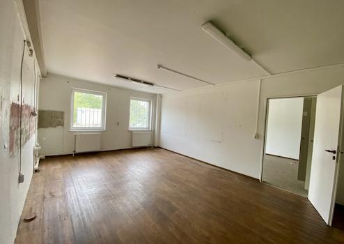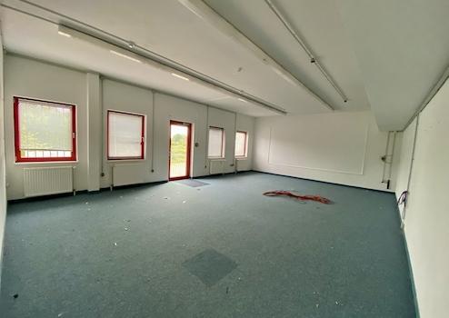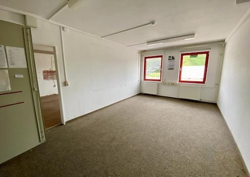 Die Büroflächen im Obergeschoss sind mit Teppichboden ausgestattet und bieten eine angenehme und professionelle Arbeitsatmosphäre.